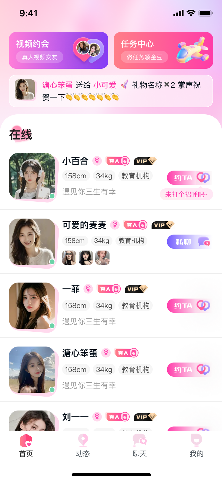 新遇是一款深受喜爱的社交app,集【距离】、【在线】、【颜值】、【声音】于一体的聊天app;这里的人真实、温暖、有趣,摆脱了时空和距离的约束,人们通过自我认知扎到真实的自己,并在社群中自由表达,分享有趣体验。来到新遇,为你解决因工作忙圈子小而找不到对象的烦恼,这里有在线视频、动态广场、附近圈子、互加好友等多种途径让你快速找到心动对象。
